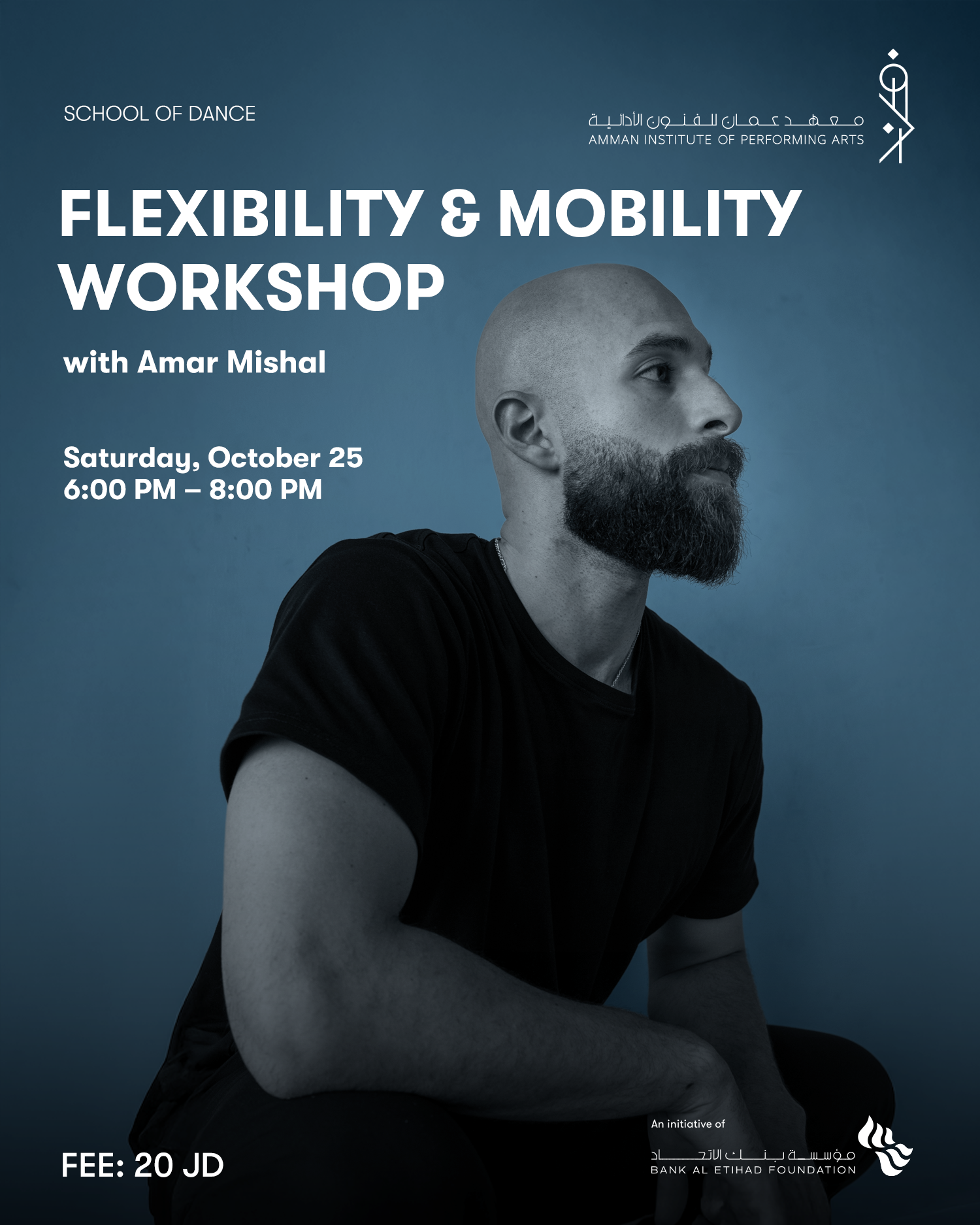 Amar’s work bridges strength, flexibility, and expressive movement through an integrative methodology that synthesises science and art. A former semi-professional basketball player, he is a certified Mat Pilates Instructor, Functional Trainer, and Mobility Coach, bringing a refined understanding of both performance and rehabilitation. His practice invites performers to cultivate freedom, control, and embodied awareness while grounding their movement in evidence-informed principles. Working alongside movement practitioners, choreographers, and physiotherapists, Amar continues to shape creative and interdisciplinary offerings across Amman’s studios and institutes.
